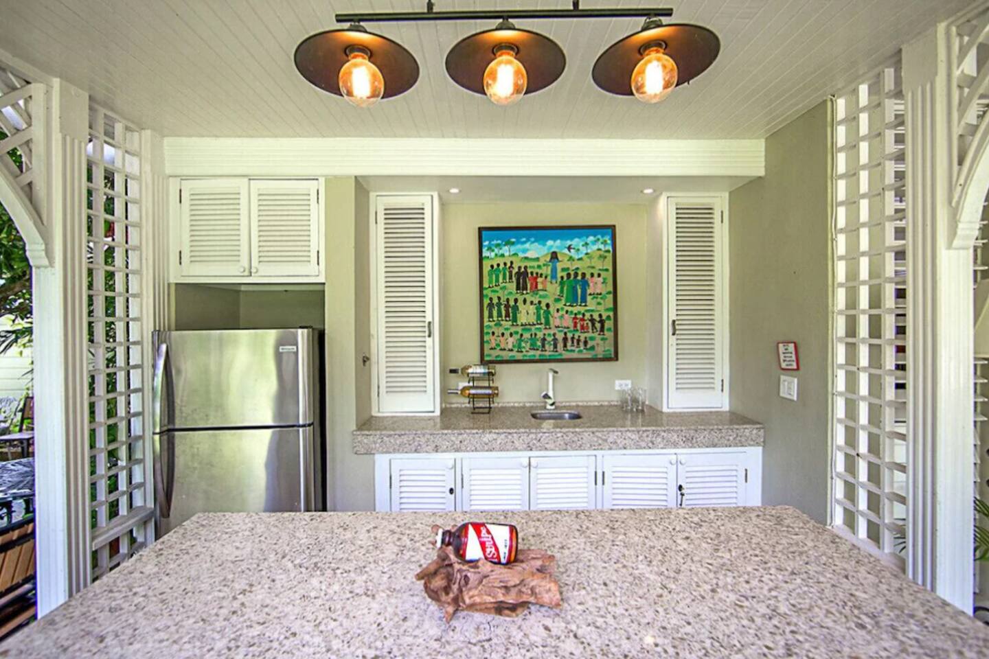 β Garden BBQ grill station & wet bar, ideal for evening gatherings.