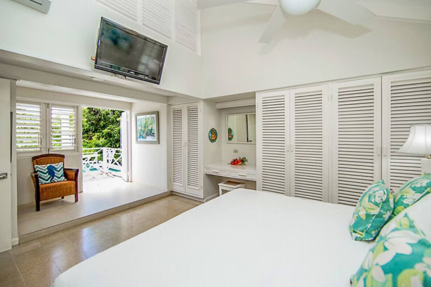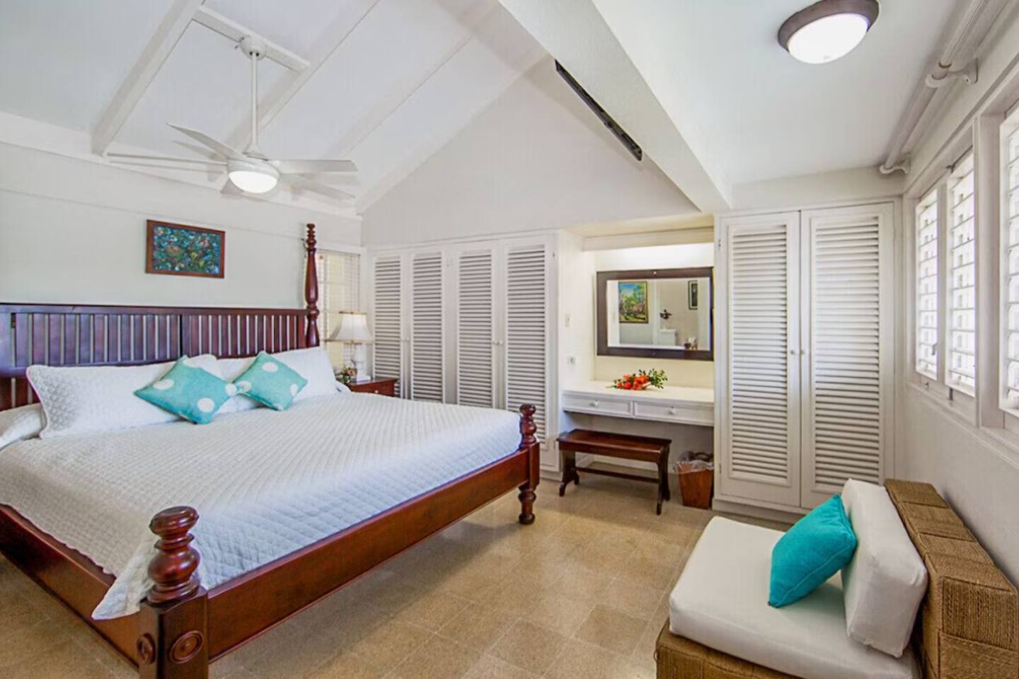 β Twin/King Bedroom (Ground Floor) β Two twin beds (convertible to king), en-suite bathroom, ocean & pool views.