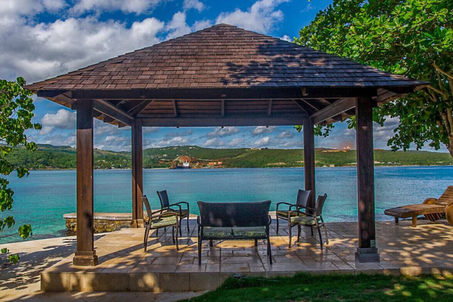 β Two seaside gazebos, ideal for relaxing with ocean views.