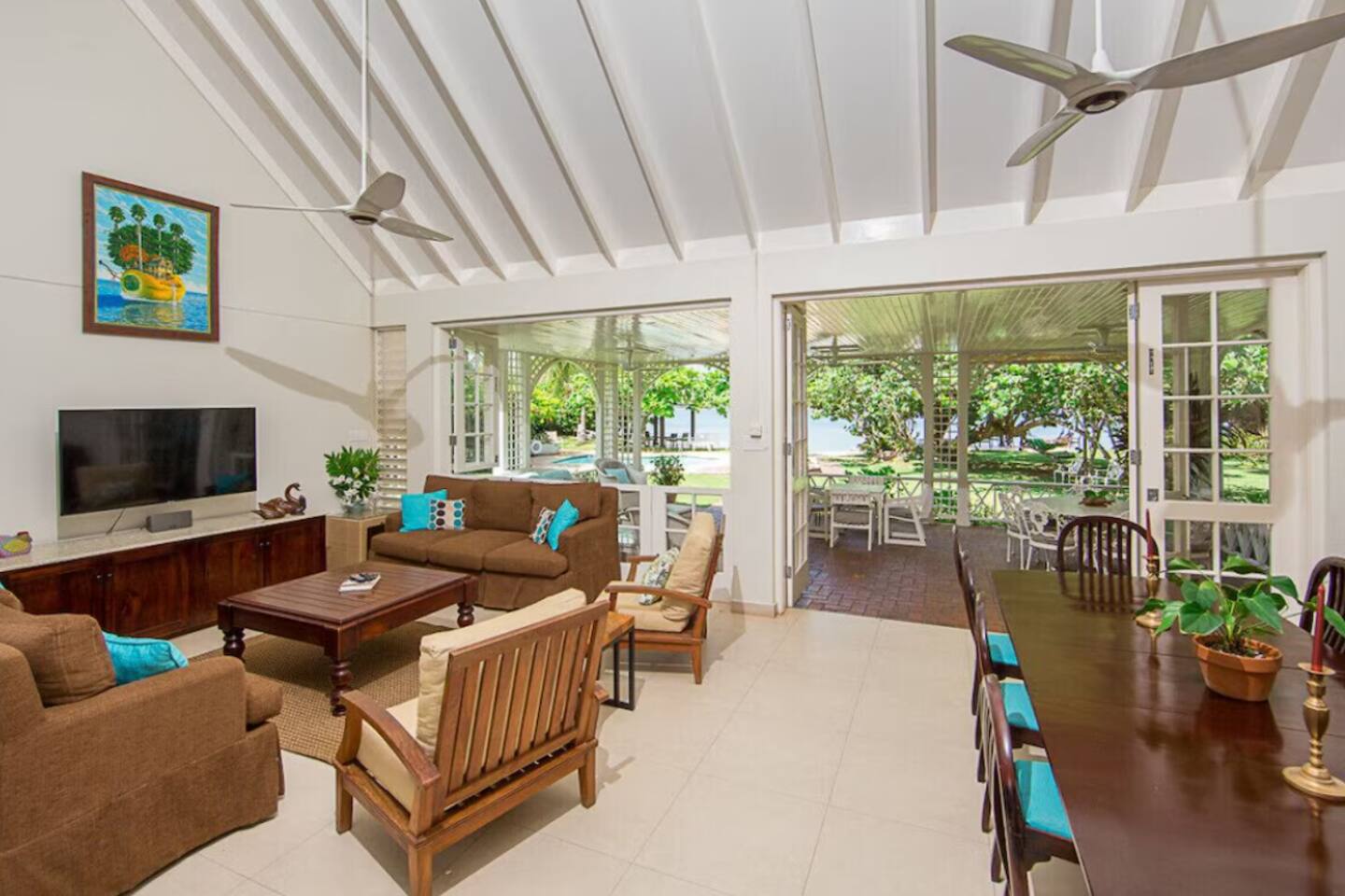 β Main house (3 bedrooms) + casual beachfront cottage (3 bedrooms).